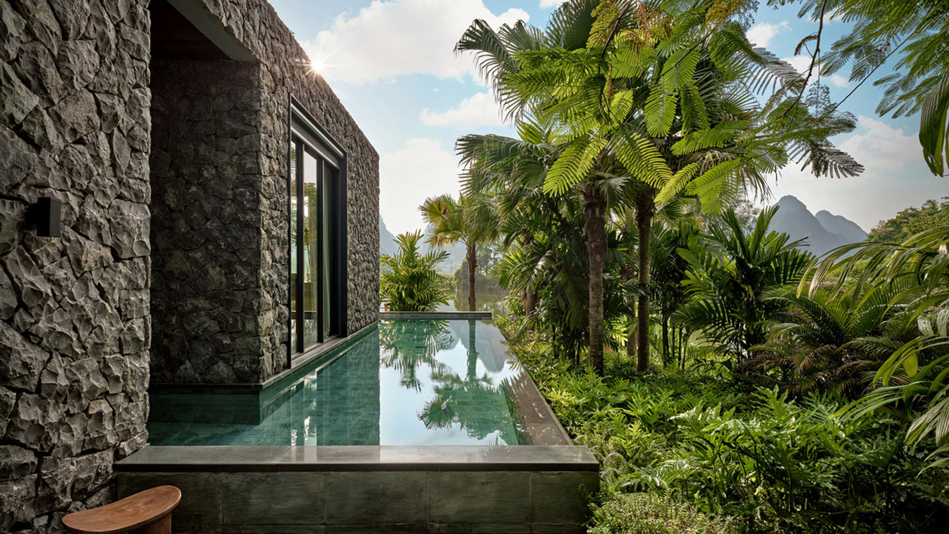 • Furnished outdoor terrace with a plunge pool and views of the surrounding Karst formations